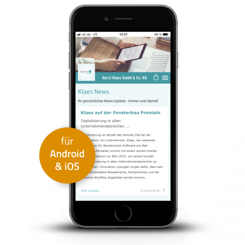 Erhalten Sie alle Klaes-News zur Fensterbau Frontale 2020 direkt per Push-Nachricht auf Ihr Smartphone. Mit unserer App für Android und iOS halten wir Sie über alles auf dem Laufenden - vor, während und natürlich auch noch nach der Messe. Zudem informieren wir Sie über Seminare, Webinare und alle anderen Klaes Veranstaltungstermine ...