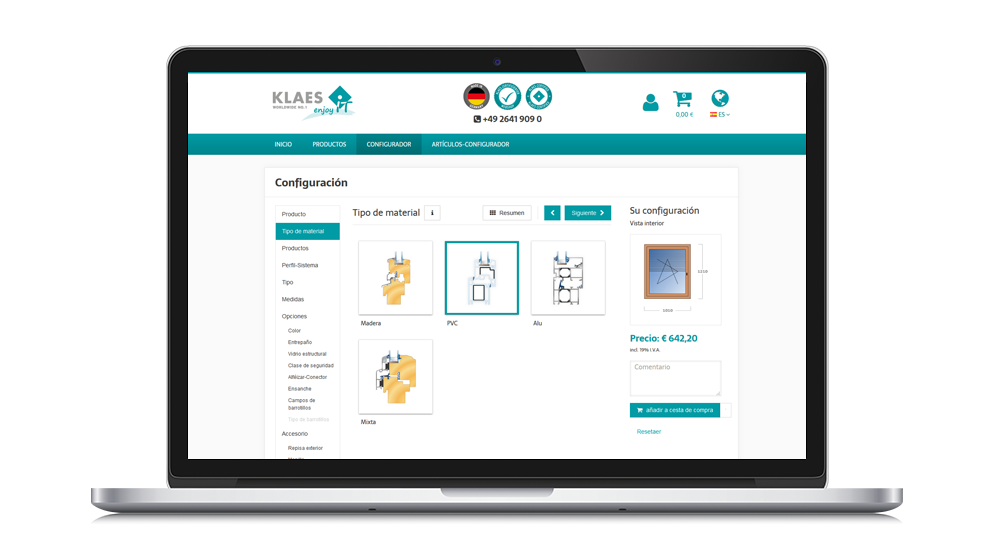 Con el Klaes webshop, está abriendo nuevas posibilidades para su presencia en el mercado y sus ventas.