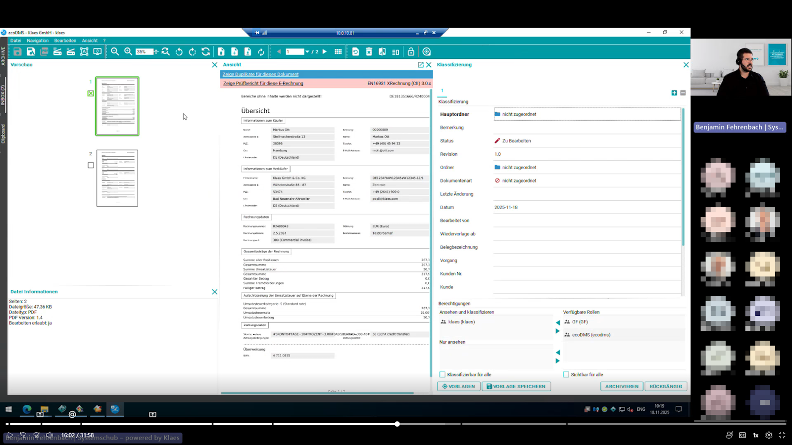 Besonders praktisch: Dokumente aus Scan-Ordnern oder E-Mails werden automatisch importiert, geprüft und nach vordefinierten Vorlagen verschlagwortet. „Hat man das einmal eingerichtet, läuft vieles komplett von allein“, fasste er zusammen.