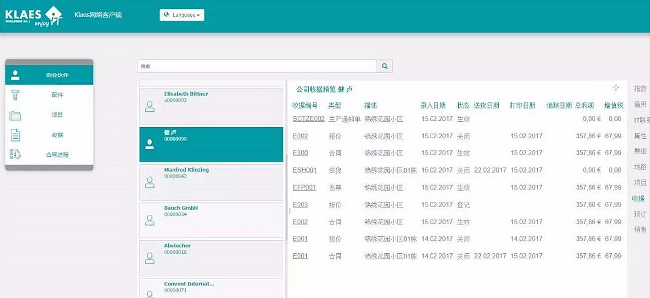 您的员工可以通过必要的权限设置登录到Klaes商务云,并由此来查看商业伙伴或者其他开放的项目。