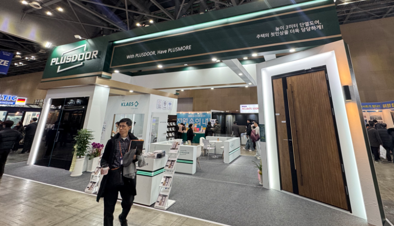 调试期间,恰逢韩国规模最大的建筑盛会——KOREA BUILD WEEK 2026(韩国建筑周)在高阳市 KINTEX 场馆盛大开幕。作为获得 UFI(全球展览业协会)与 AKEI(韩国展览业协会)双重认证的权威展会,这里汇聚了建筑行业的尖端趋势。Plusdoor携其高性能产品重磅亮相,而在其展位上,Klaes的品牌标识也展示其中。这份在韩国建筑周上的“亮相”,不仅是Plusdoor对Klaes技术的认可,更是双方深度信任的最好证明。